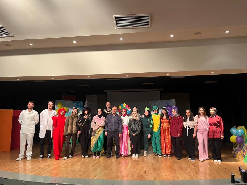 Fakültemizin Türk Dili ve Edebiyatı Bölümü Yeni Türk Edebiyatı Anabilim Dalı öğretim üyesi Doç. Dr. Metin AKYÜZ’ün rehberliğinde, Eğitim Fakültesi Türkçe Bölümü öğrencileri tarafından “Tiyatro ve Drama Uygulamaları” dersi kapsamında hazırlanan “Kahraman Aranıyor” adlı çocuk oyunu, 15.04.2026 tarihinde Kültür Merkezi Pembe Salon’da sahnelendi. Saat 10.30 ve 13.30’da iki seans olarak gerçekleştirilen gösterilerde, Bolu İl Milli Eğitim Müdürlüğü’ne bağlı okullardan yaklaşık 300 öğrenci minik seyirci olarak yer aldı. Renkli ve eğlenceli sahne performanslarıyla dikkat çeken oyunda çocuklar hem keyifli vakit geçirdi hem de öğretici içeriklerle buluştu. Oyun sonunda sahneye çıkan öğrenciler, oyuncularla hatıra fotoğrafı çektirerek mutluluklarını paylaştı.